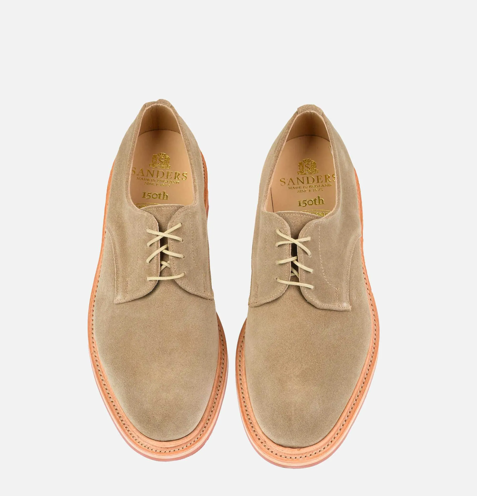 Buck Derby In Velvet Calf LeatherHandcraftedChic & Casual Sanders Uk Gibson Vamp Dirt Shoes100% Leather Made In Engl…