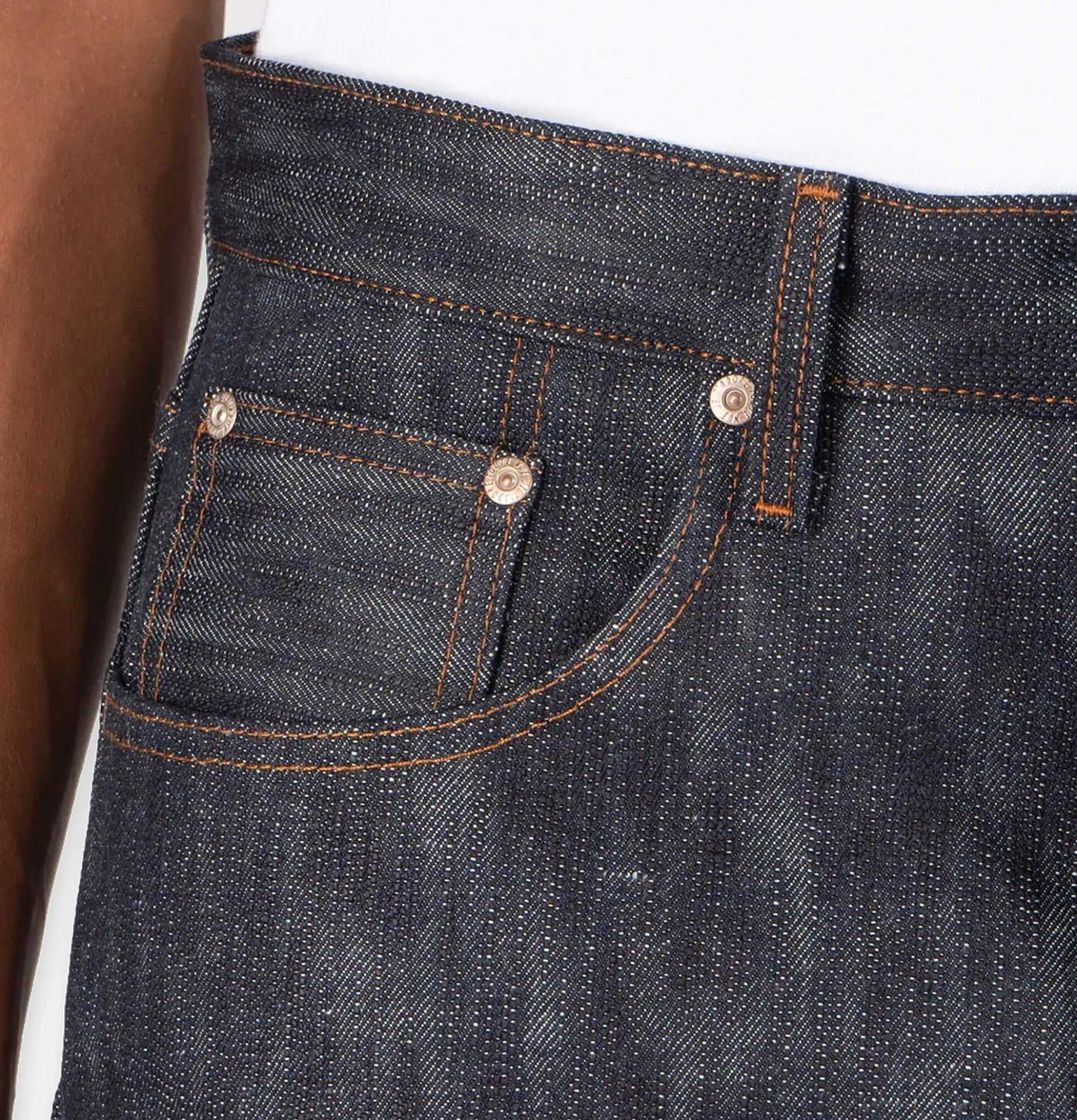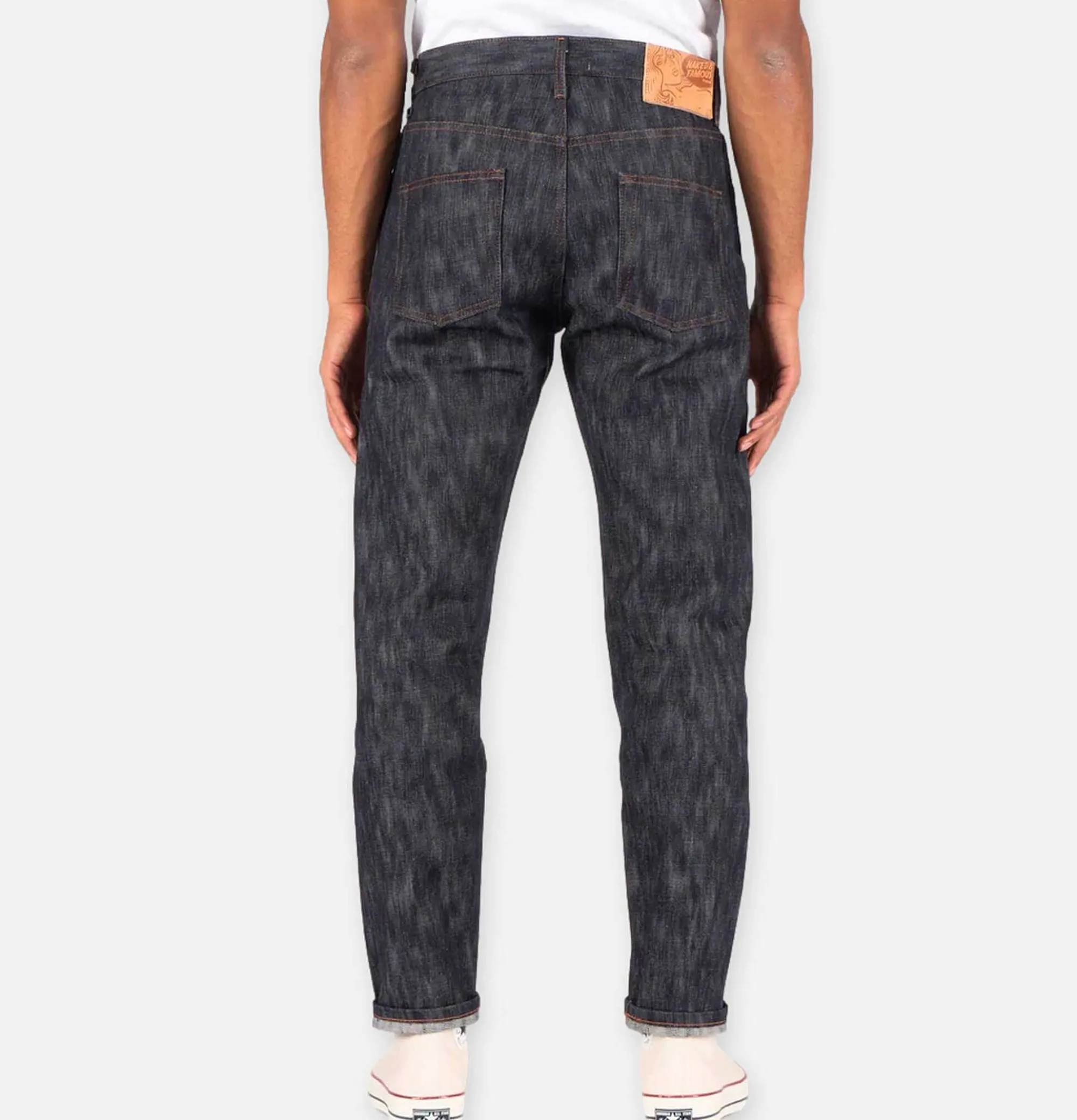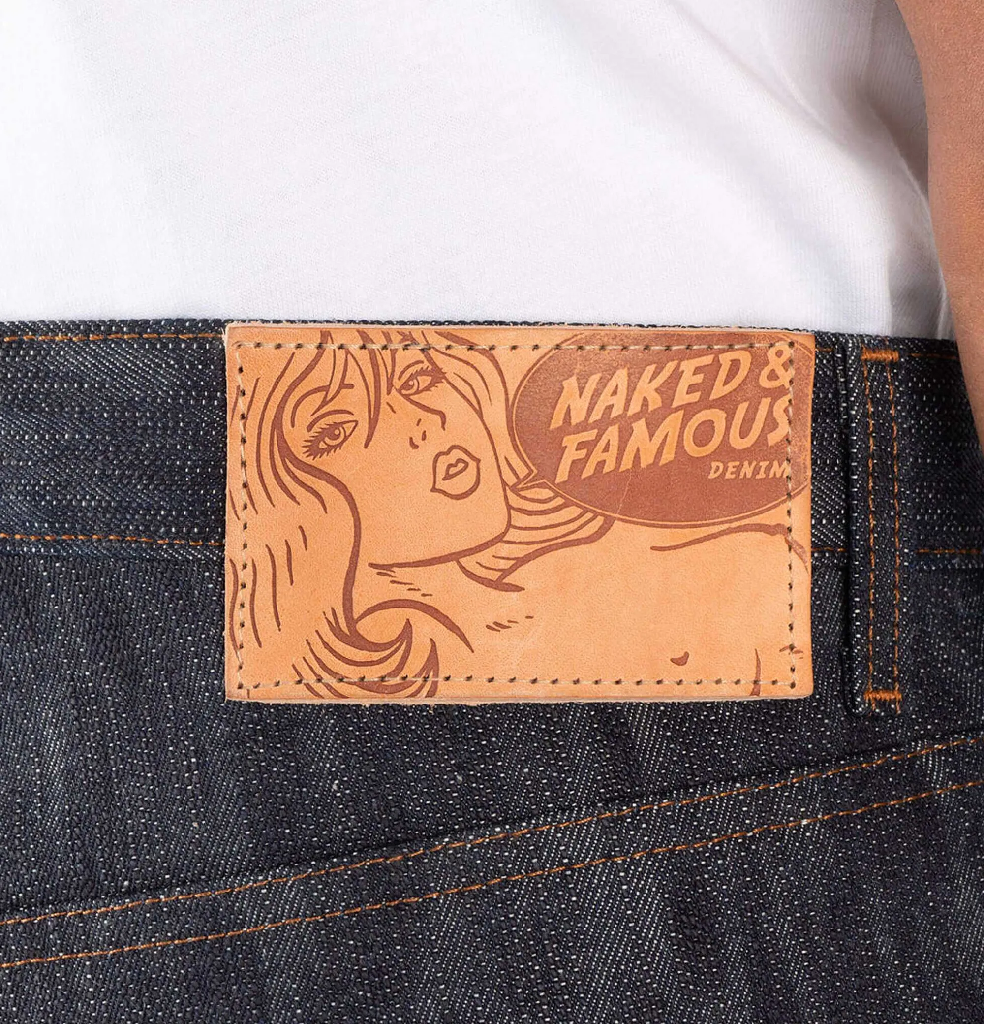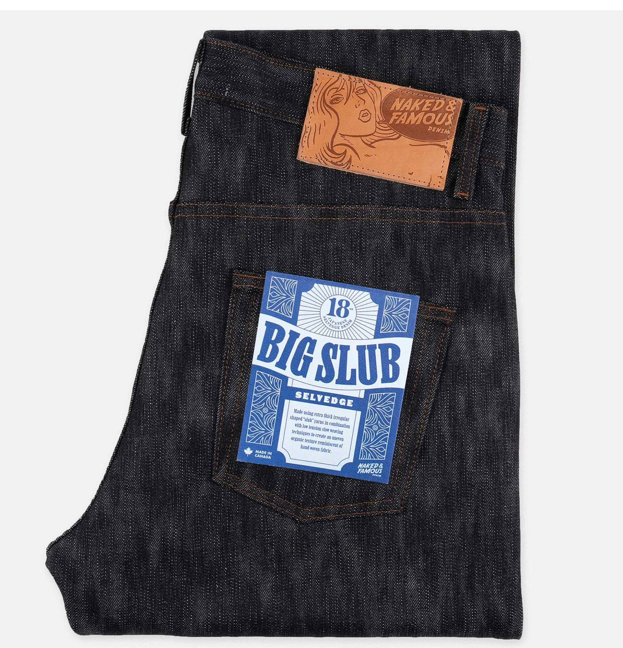 18 Oz Denim Irregular Organic Texture Natural Vegetable Tanned Leather Patch Button Fly 100% Cotton, Made In Canada