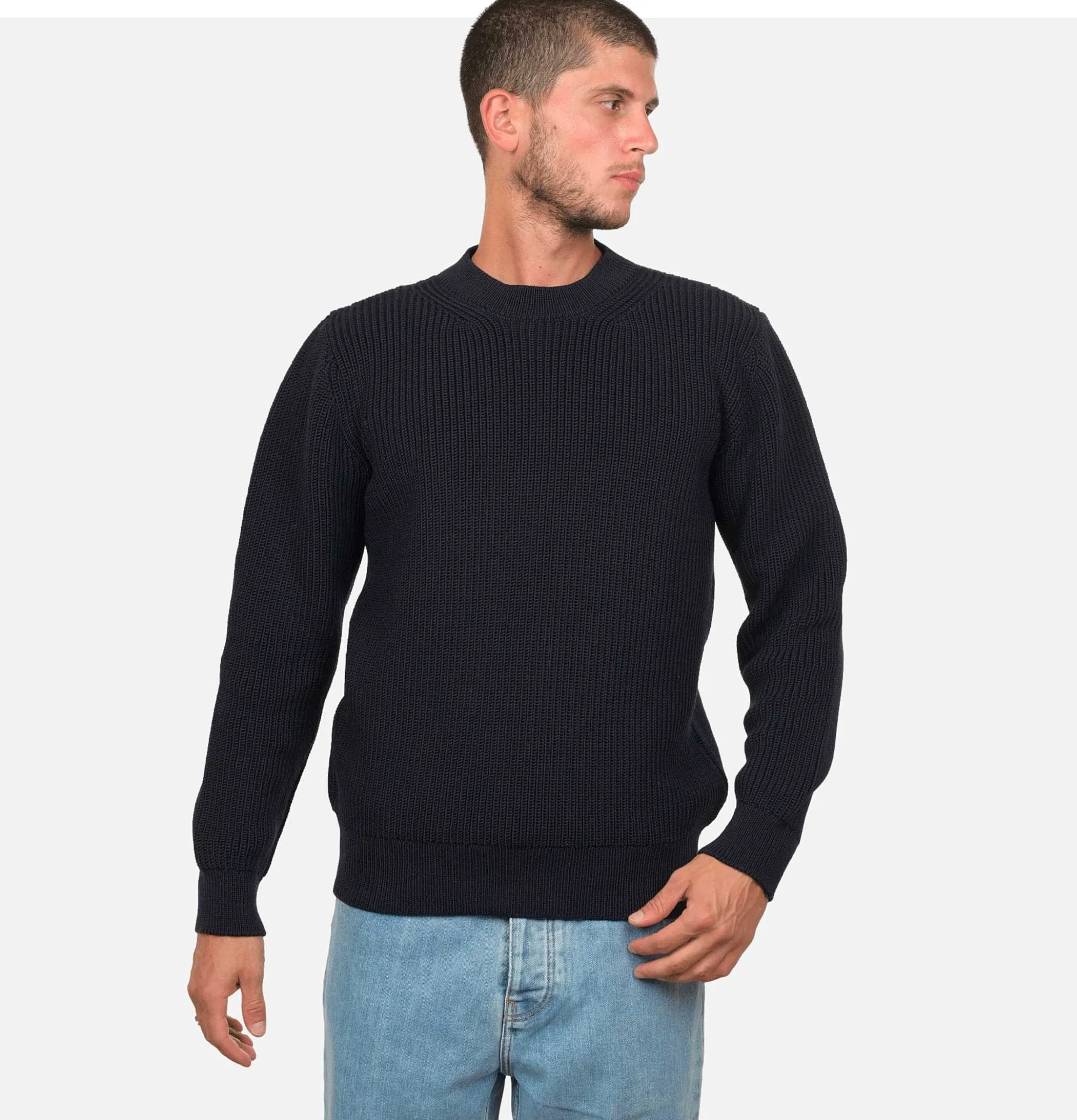 Straight Shape Round Neck Sleeve And Collar Finish Thick KnittingNitto Knitwear Sweater Nitto Vasken Navy100% Extra Fine…