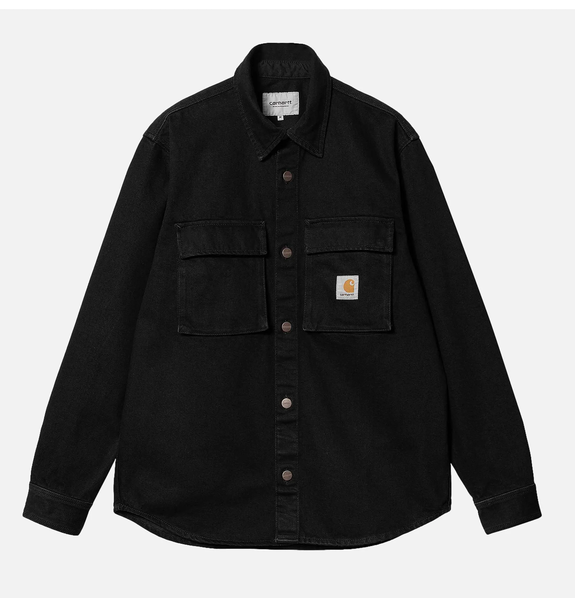 Two Chest Pockets With Flap And Snap ClosureTail ButtonsSquare LabelCarhartt Manny Black Rinsed Jacket100% Cotton