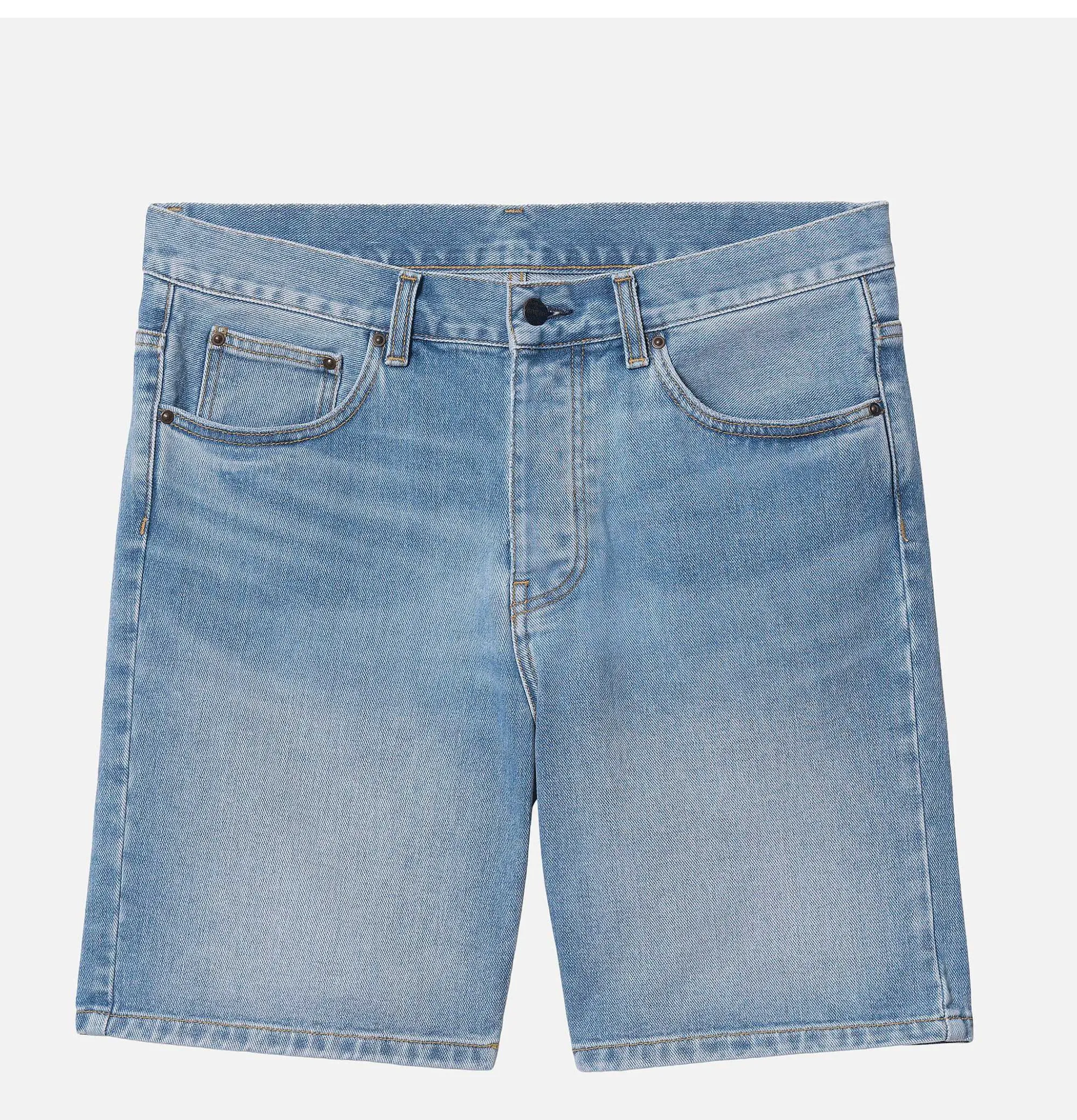 High WaistRelaxed FitClassic Five PocketButtonflyLogo Patch PocketCarhartt Wip Newel Denim Short Blue Light Used..100% C…