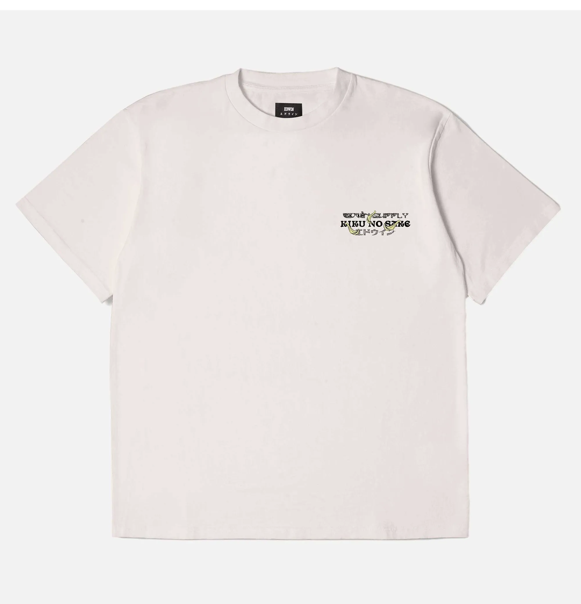 Shorts SleevesChest And Back PrintRegular FitRound NeckEdwin Europe Kiku No Sake Tee Off White.100% Cotton