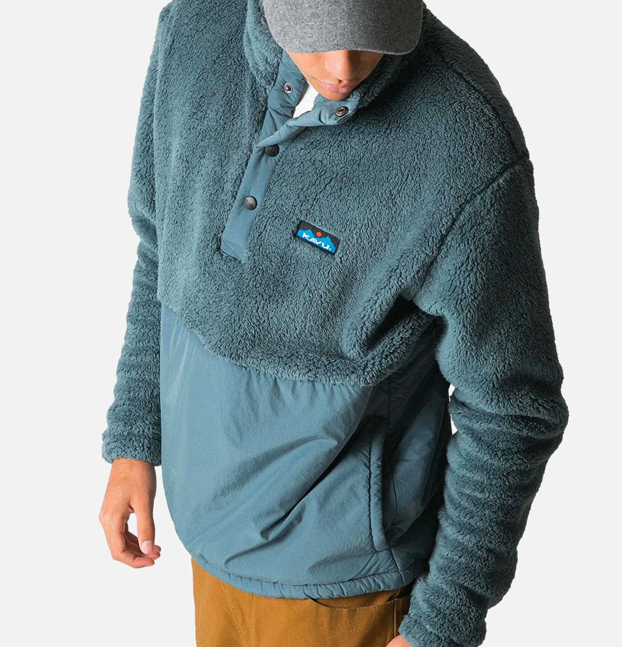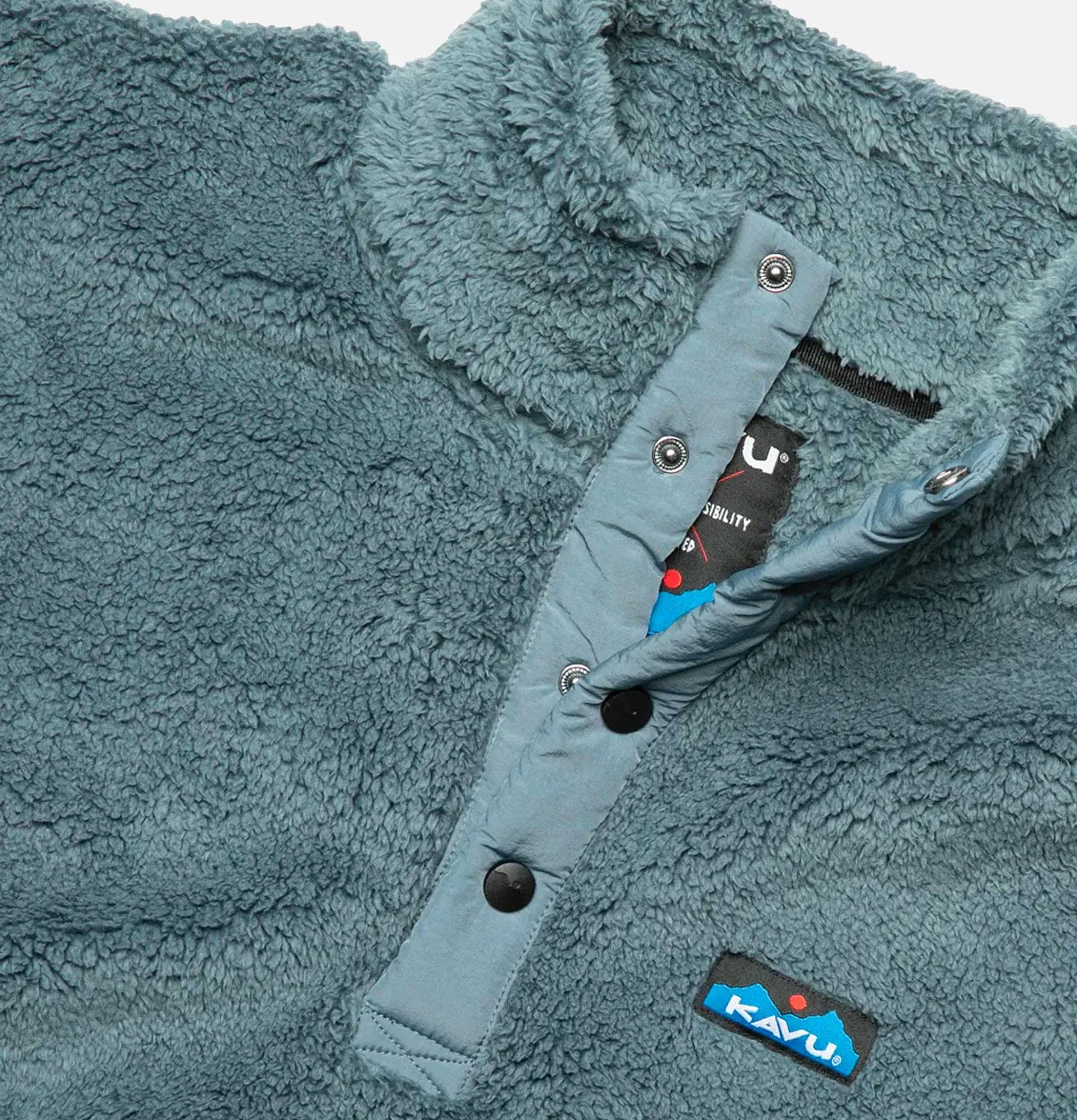 Soft Fleece Round CollarPress Stud Fastening Rubberised Logo Kavu Balsa Fleece Stormy Weather Blue10 Oz Sherpa Fleece, 1…