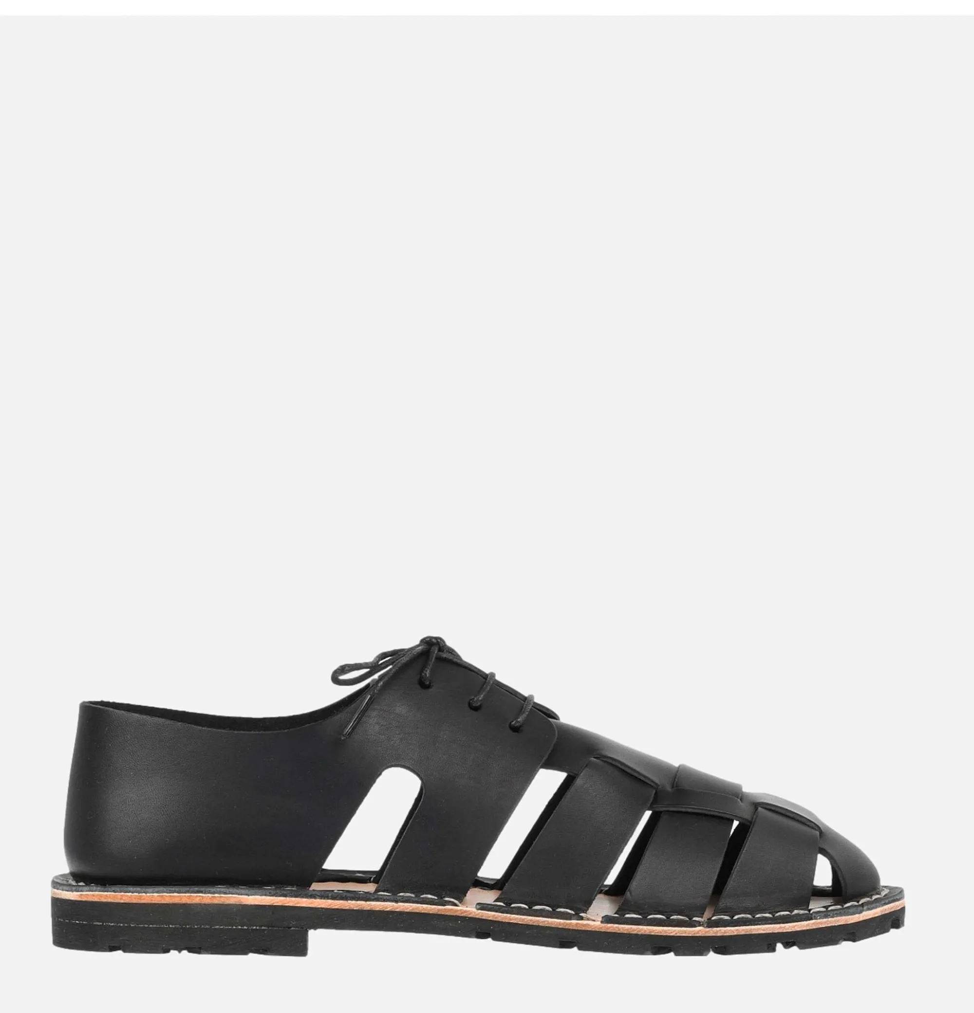 Leather SandalsLace Up FasteningKiltie DetailRubber SoleSteve Mono Artisanal Sandal Black100% Leather Vegetable TannedMa…