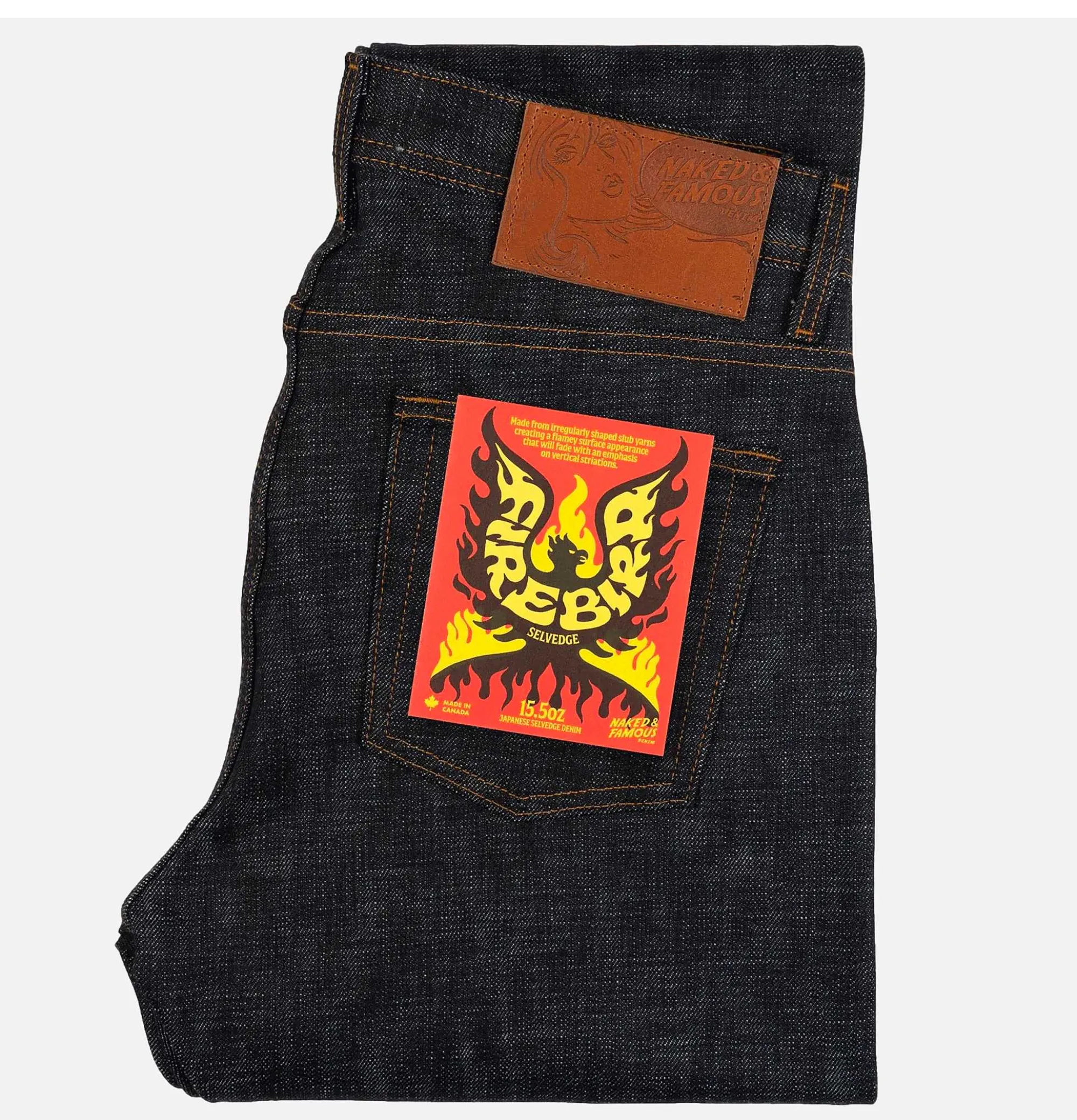 Standard FitTapered LegMid Rise15.5Oz Japanese Selvedge DenimButton FlyNaked And Famous Jeans Easy Guy Fire Bird100% Cot…