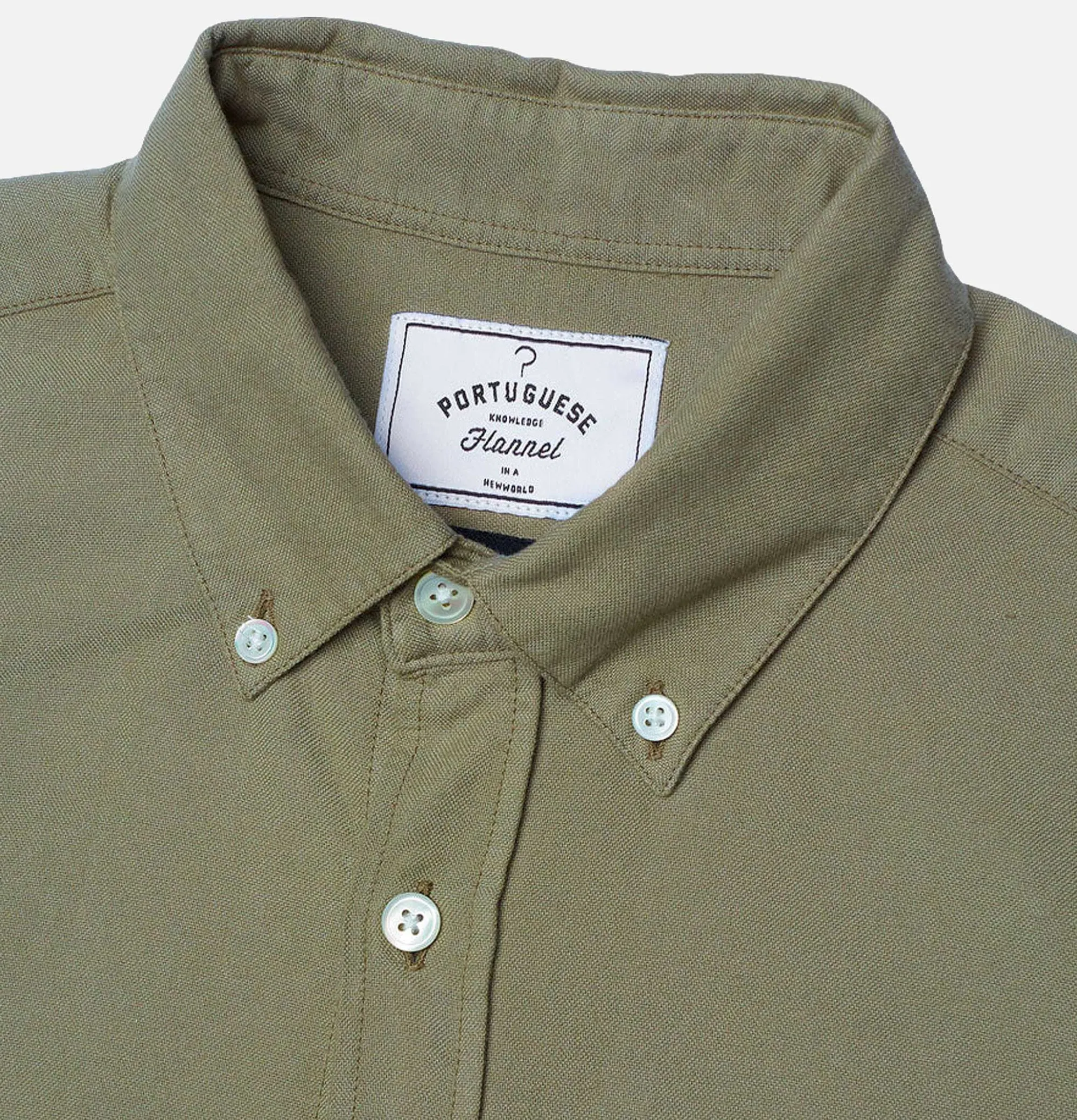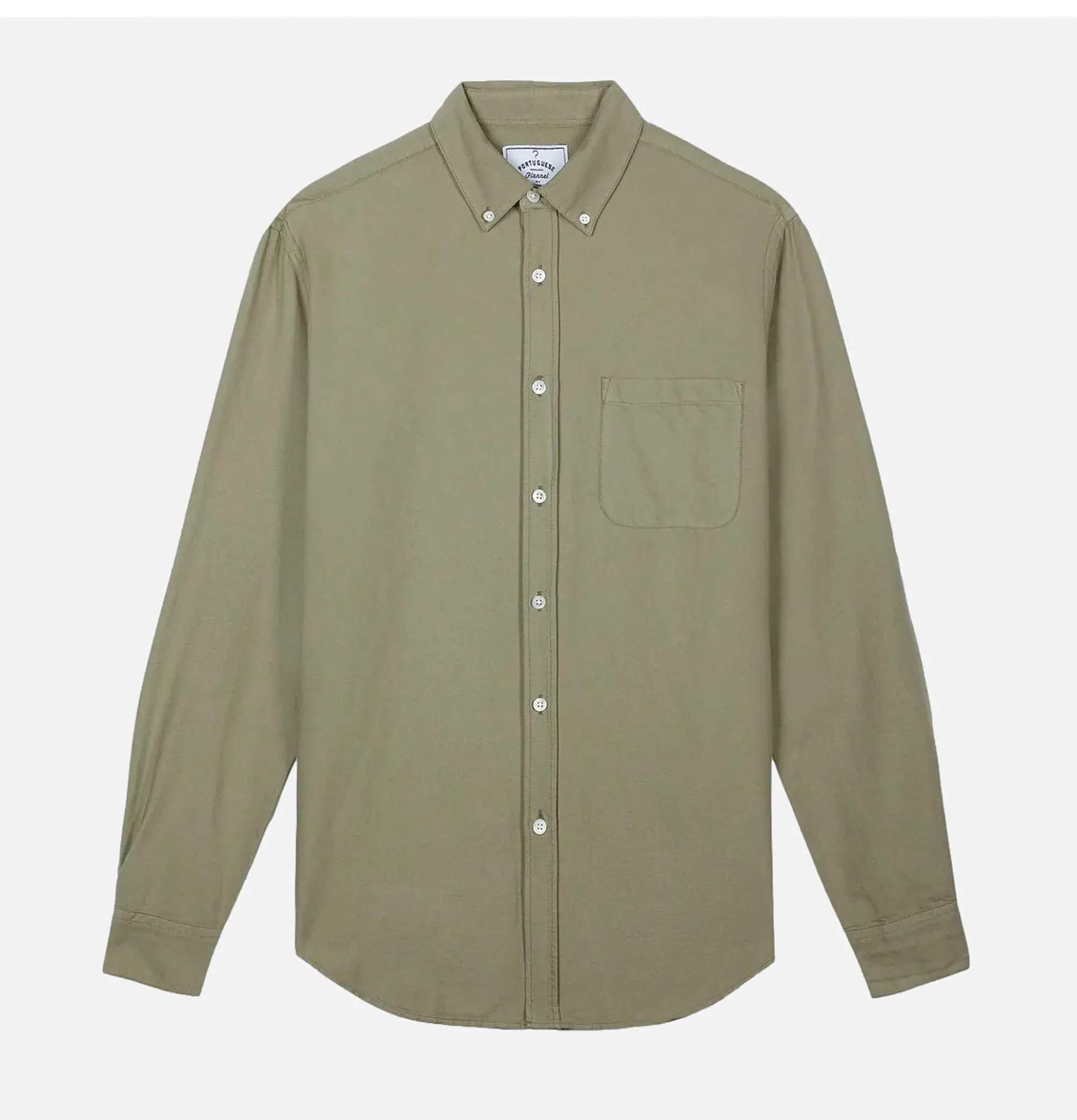 Long SleevesButtondown CollarCurved HemChest Pocket Portuguese Flannel Shirt Belavista Olive.100% CottonJeremy Measures …