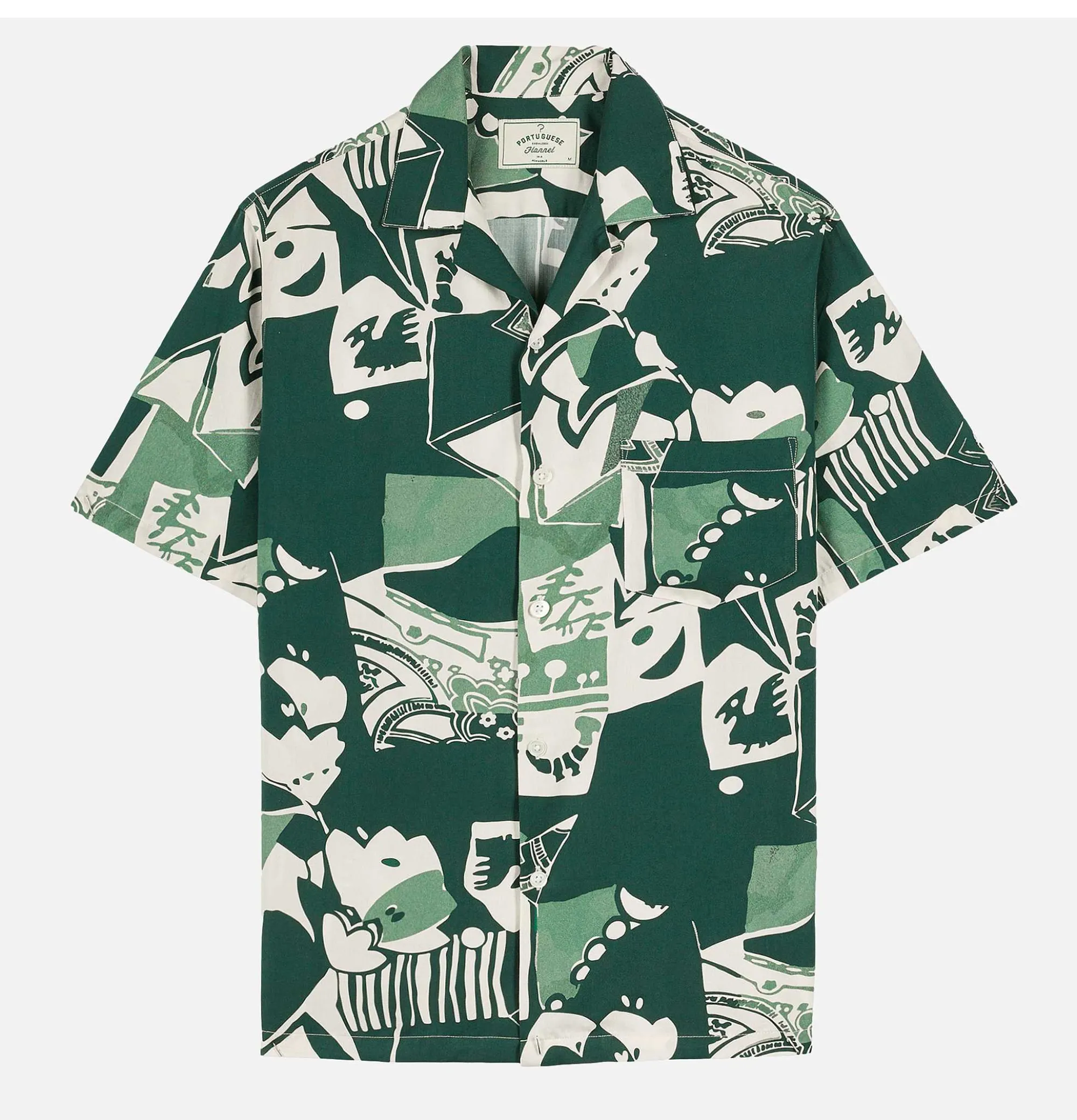 Relax Fit Camp Shirt Collar Large Chest Pocket Portuguese Flannel Shirt Cuca Green