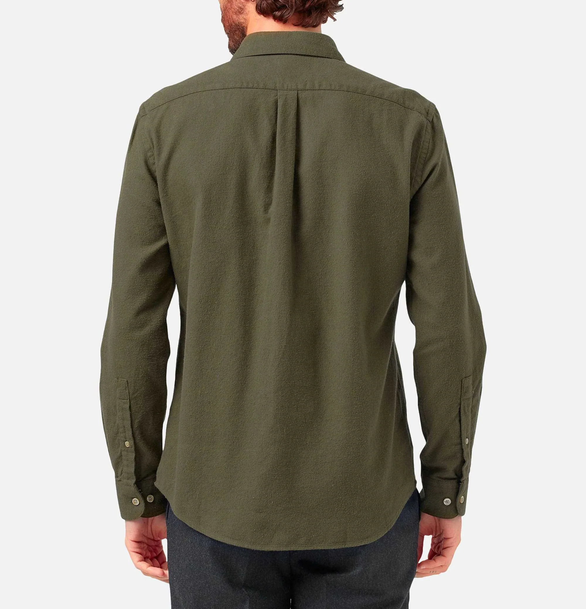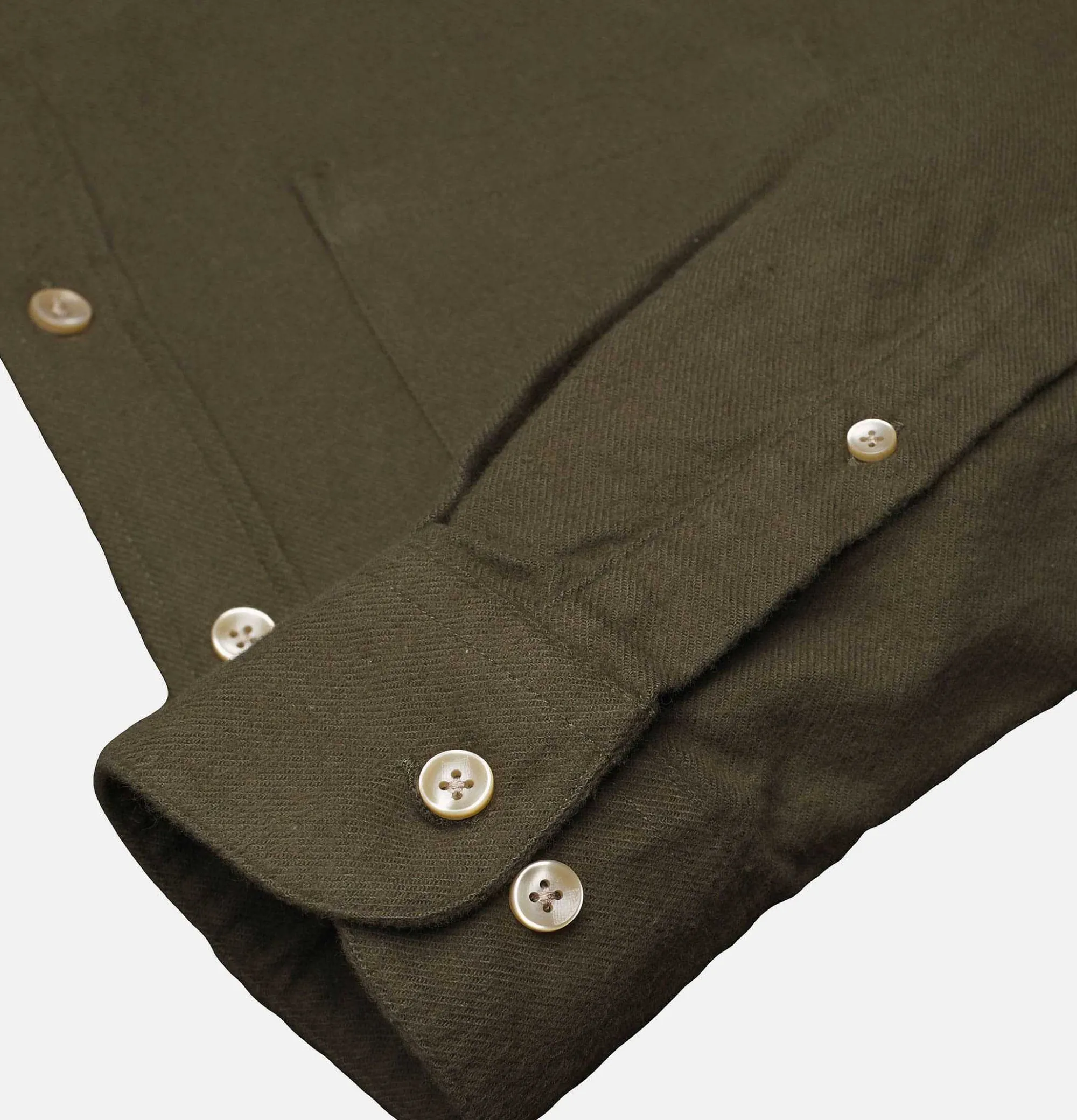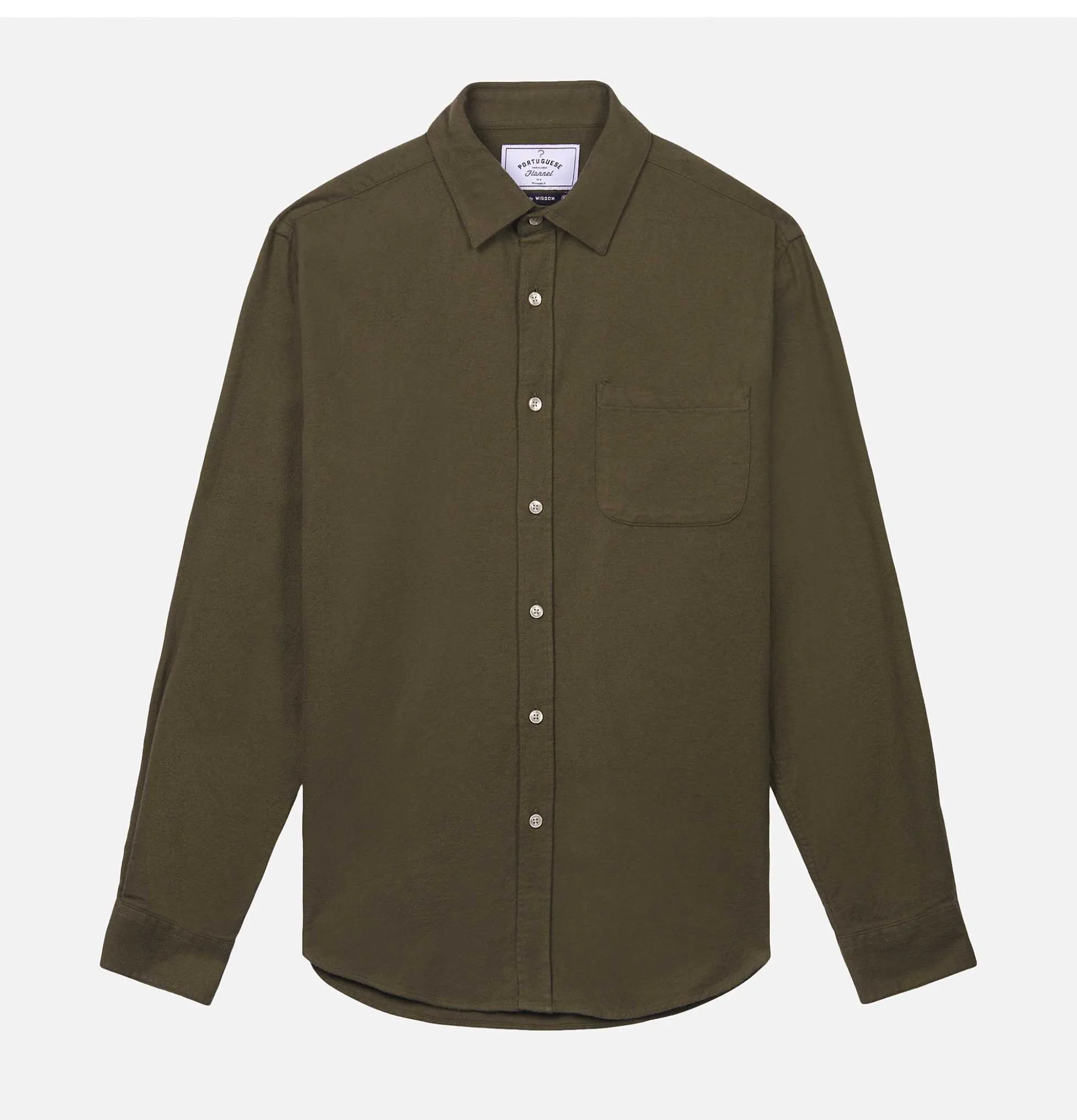 Classic Collar Straight Slim Fit 1 Chest Pocket Portuguese Flannel Shirt Teca Olive100% CottonMade In Portugal