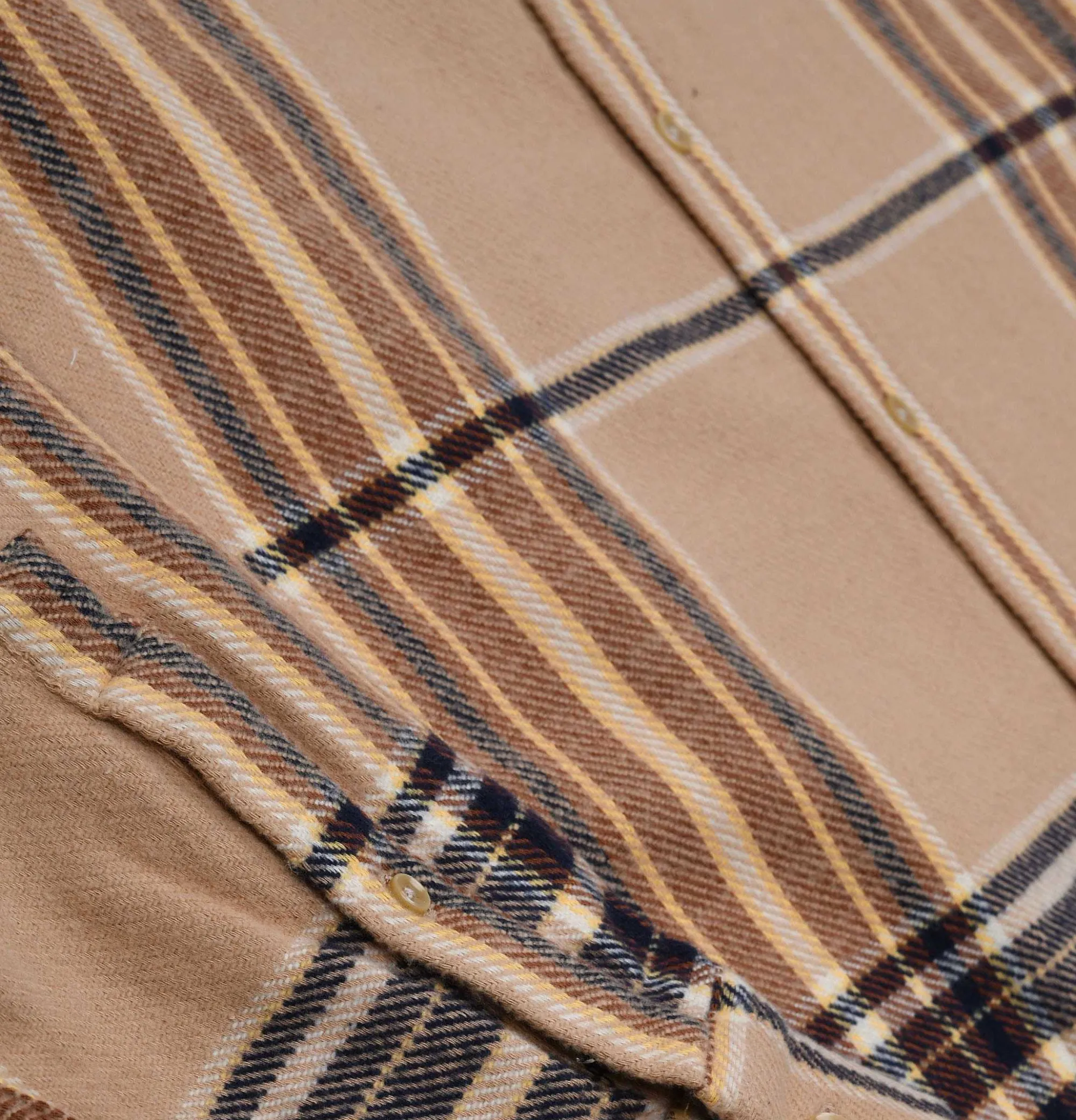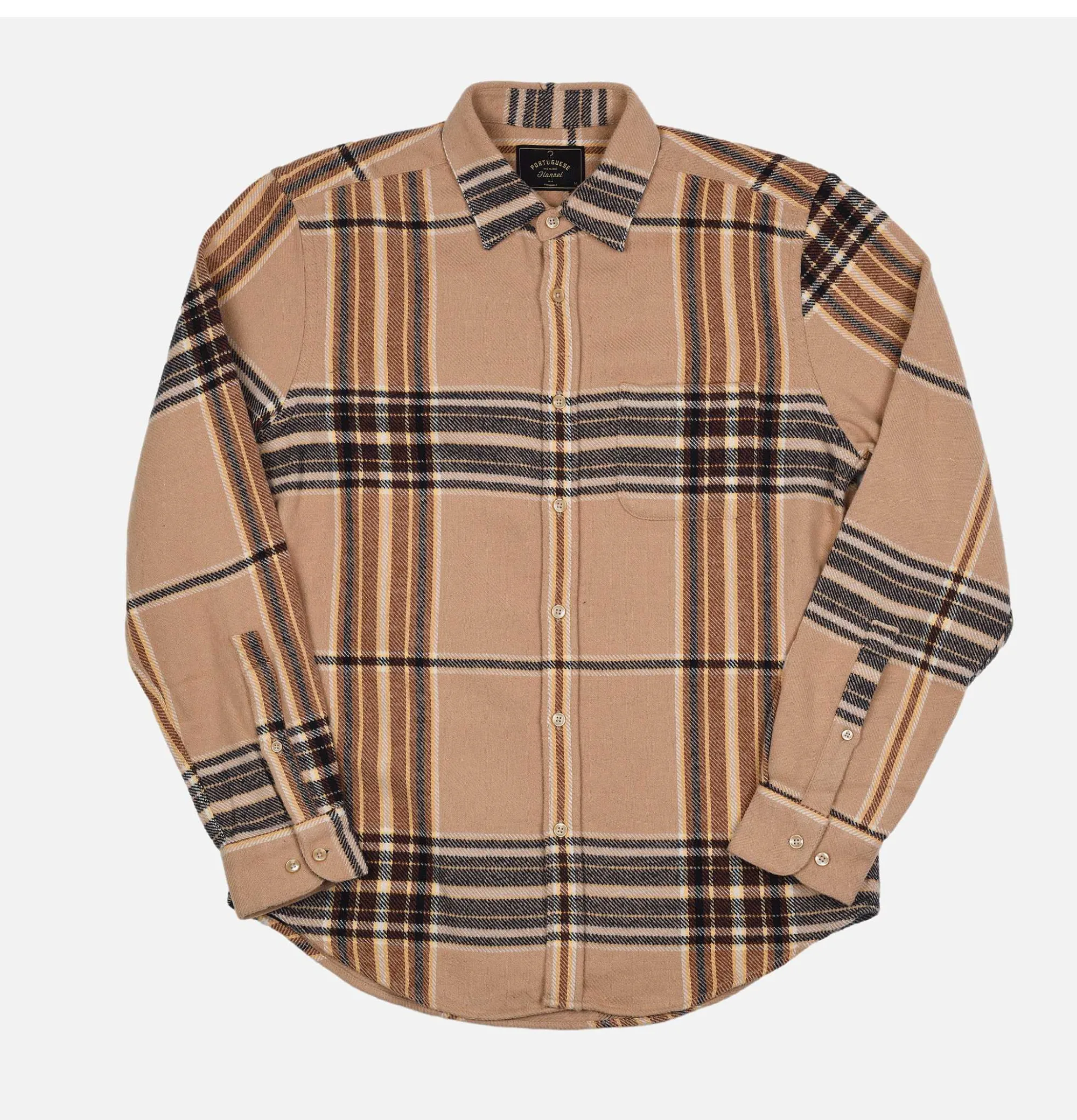 Long Sleeved Plaid ShirtRegular FitCurved HemChest Pocket Portuguese Flannel Hazelnut Shirt Beige100% Cotton Flannel Twi…