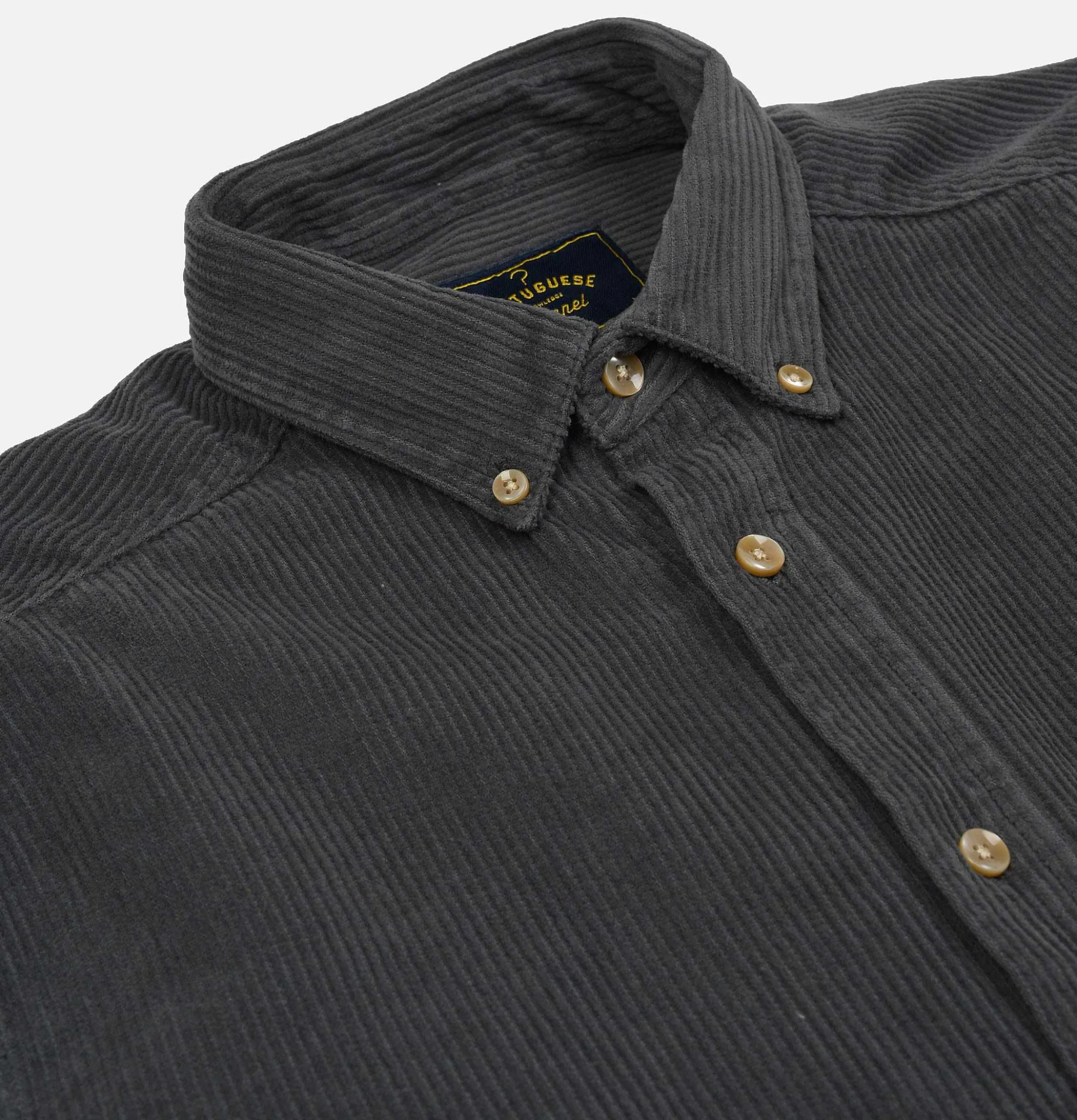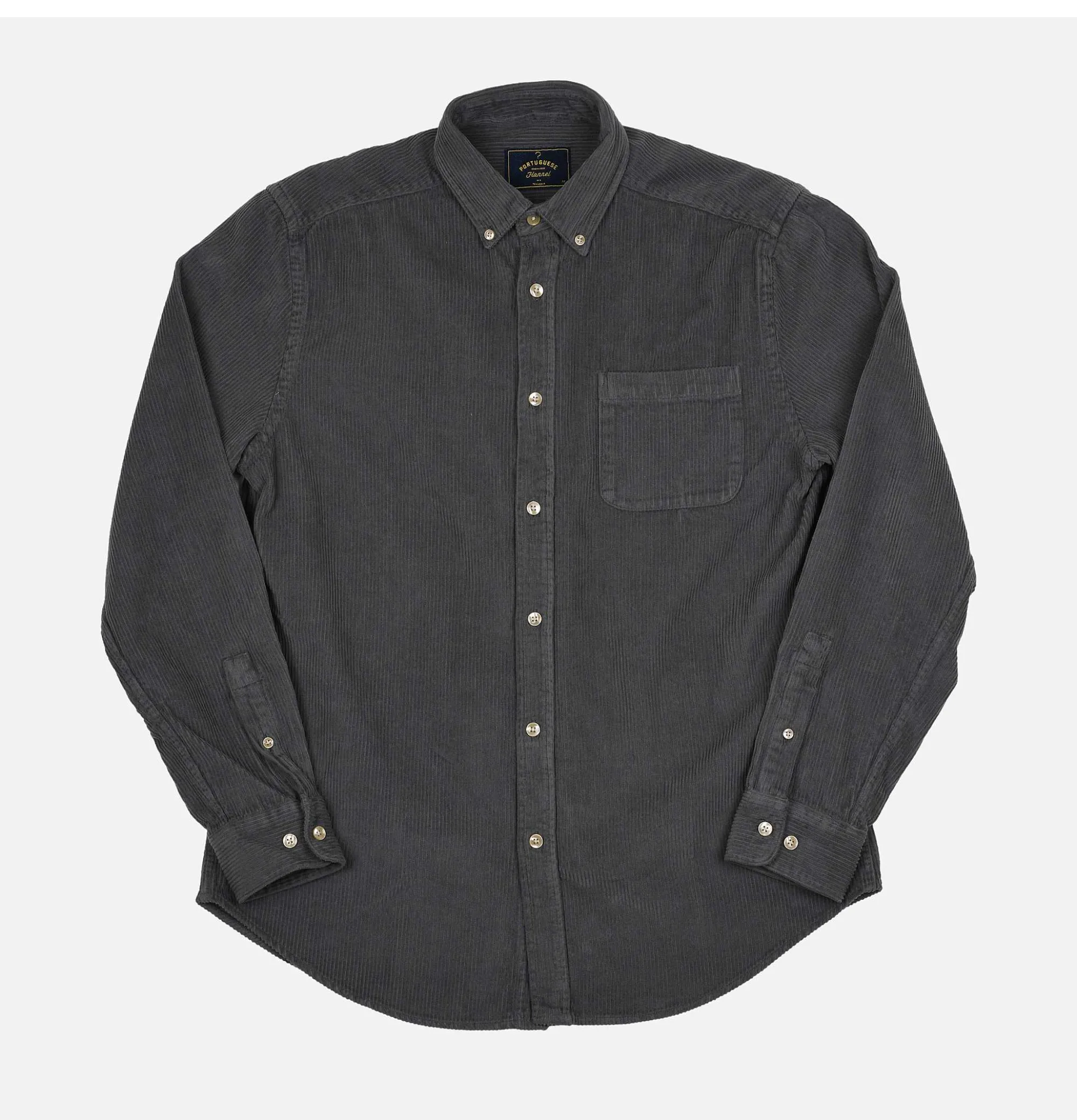 Long SleevesCorduroy ShirtButtondown CollarCurved HemChest Pocket Portuguese Flannel Shirt Lobo Anthracite100% Cotton