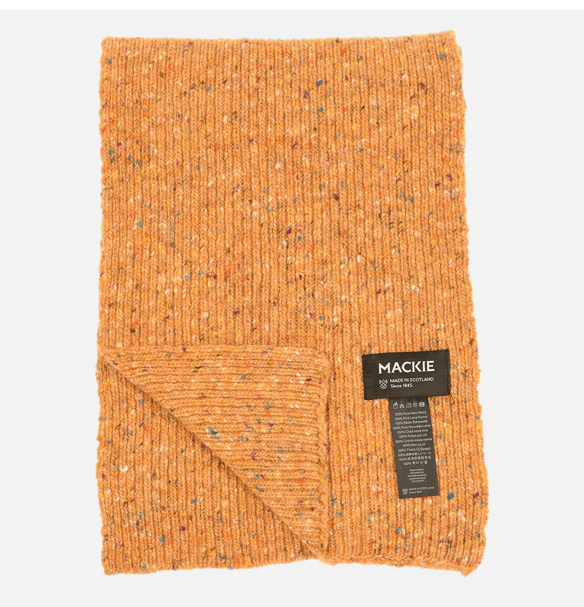 Donegal Wool ScarfHeathered YarnRobert Mackie Conic Donegal Wool Scarf Hickory.100% Wool Made In Scotland